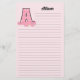 Pink Gingham Letter A Girl's Monogram Stationery