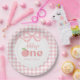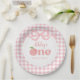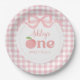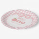 Pink Gingham Peach First Birthday Paper Plate
