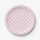 This paper plate features pink and white gingham pattern. You can resize the pattern and change the color of the background.