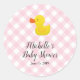 Pink Gingham Rubber Duckie Baby Shower Classic Round Sticker