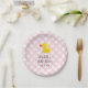 Pink Gingham Rubber Duckie Baby Shower Paper Plate