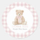 Pink Gingham Teddy Bear Baby Shower Classic Round Sticker