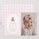 Pink Gingham Teddy Bear Beary First Birthday Photo Invitation