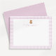 Pink gingham teddy bear nursery note card featuring a sweet teddy bear illustration paired with a soft pink gingham border and delicate elegant typography. Perfect for thoughtful handwritten notes, thank you messages, and everyday correspondence.