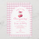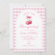 Pink Gingham with Bow She's Cherry on Top Birthday Invitation