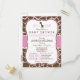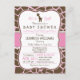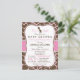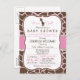It's a girl! Cute, elegant girly pink giraffe baby shower invite on pink and brown giraffe animal print pattern with vintage formal look. Great for jungle, zoo animals theme baby showers. Retro bracket shape invitation.