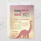 Trendy, girly, glitter pink and gold girl 3rd birthday invitation, with cute dinosaur silhouette and modern typography. Young Wild and Three!
