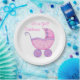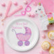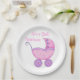 Pink Girl Baby Buggy Its a Girl Name Personalised Paper Plate