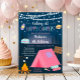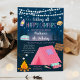 This girl birthday invitation features adorable camping illustrations with glowing string lights and stars.