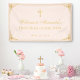 Pink Girl First Communion Faux Gold Cross Welcome Banner