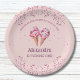 Celebrate your baby girl's 1st birthday in style with this delightful, personalised Ice Cream 1st Birthday paper plate. These charming plates feature a pastel pink background adorned with pink glitter sprinkles and lush red and purple cherries, adding a touch of sparkle and sweetness to your little girl's special day. The design showcases delicious swirls of pink, white and lilac ice cream scoops in crisp wafer cones. Perfect for a little girl's first birthday party, these paper plates bring joy and colour to your celebration, making it an unforgettable event for everyone!
