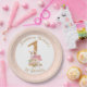 Pink Girl Swan 1st Birthday Paper Plate