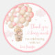 Pink Girl Teddy Bear Hot Air Balloon Baby Shower Classic Round Sticker
