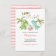 Pink Girl Tropical Dinosaur Baby Shower Roar Invitation
