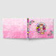 An adorable little hand drawn cartoon baby girl surrounded by flowers and a pink background. Customise your baby shower guestbook in the personalise area by adding mum to be or baby's name and the baby shower date.