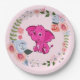 Pink Girl's Elephant Floral Baby Shower Paper Plate