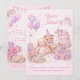 This invitation features a soft, pastel watercolor illustration with a sweet, whimsical first birthday theme. At the center is an adorable scene of plush stuffed animals—a floppy-eared bunny and a teddy bear wearing a party hat—seated together and holding a cupcake. Beside them is a friendly unicorn standing near an elegant pink tiered birthday cake adorned with delicate decorations and candles. Surrounding the scene are pastel balloons, wrapped gifts with bows, dainty flowers, butterflies, and gentle confetti details, all set against a blush pink, lightly textured background. The overall look is charming, playful, and dreamy, perfectly suited for celebrating a little one’s first birthday. Personalize with your own information.