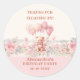 Pink Girl's Teddy Birthday Party Thank You Classic Round Sticker