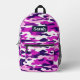 Own your style with our Name Customisable purple camouflage backpack. Bursting with vibrant colours, this backpack is a bold statement in individuality. Personalise it with your name for a unique touch!