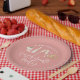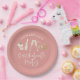 Pink girly modern cocktail script bachelorette paper plate party design.