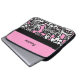 Pink girly monogram laptop cover with beautiful pink, black, and white colour combination that includes a pretty floral damask pattern, pink background colour you can change, and monogram space you can make your own by adding your name or initials. Designed for ladies or girls who like floral patterns and adding their name to personalise their belongings.