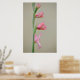 My original photographic artwork is featured on this poster, of a profile view of pink gladiolus flowers (also called glad) as it is blooming out - and in a portrait format. The size of this art piece is 36 inches by 24 inches; however, you can size down if you please. This art is printed on affordable poster paper in a matte surface. (You may choose to print on other options, if you wish). This unique photographic print would be a great addition to any wall in the office or home.
