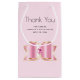 Thank you gift bag for parties or business. A glitzy shiny bow with gold gradient outline and a faceted pink gemstone in the centre. Feminine luxury glam style.