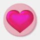 This magnet features a shapely pink heart with a glass-like appearance on a purple background.