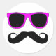 Pink Glasses Moustache Retro Classic Round Sticker