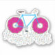 A colourful illustration of a bicycle with pink glazed doughnut wheels and sprinkles. Cute and funny gift for anyone and any age. Great way to burn those doughnut calories!