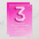 Pink Glitter Balloon 3rd Birthday for Girls Invitation