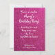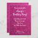 Birthday invitation template with faux (not real) pink glitter background very sparkly, shiny and girly