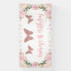 Sweet butterfly themed birthday party banner featuring two lovely watercolor pink floral arrangements, pink glitter butterfly and some calligraphy text. This sweet butterflies birthday backdrop is a lovely addition to your little girls butterfly themed first birthday party.