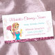 Cute Pink Glitter Cartoon Duster Maid House Cleaning Service Business Card.