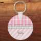 Pink Glitter Chevron Plaid Rhinestones Personalise Key Ring
