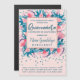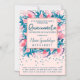 This pretty and girly themed Quinceañera 15th birthday party invitation is perfect for the trendy and stylish birthday girl. Its beautiful, unique and artsy design features a hand-painted bright pink, blush pink, and dark purple flowers and teal blue leaves arrangement on top of a simple blush pink background with faux printed teal blue sparkly glitter confetti. An elegant faux printed rose gold border frames the text. Customise the background and font colours by clicking the "customise" for options.