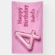 Pink glitter cute balloon no.4 girly 4th birthday banner