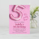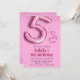 Pink glitter cute balloon no.5 girly 5th birthday invitation