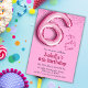 Pink glitter cute balloon no.6 girly 6th birthday invitation