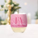 Pink Glitter Drinkware Set with Name & Initials Stemless Wine Glass