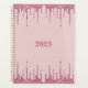 This Planner is a 2025 Planner. The Planner cover has pink glitter drips and a pink background on the front and back. The spiral is gold. You can change the year on the front by clicking the Personalise button. The Planner would be a good gift for a female teen, a woman and/or a graduate.