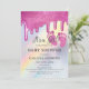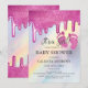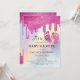 Pink Glitter Drips Rainbow Holographic Baby Shower Invitation