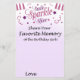 Pink glitter Favourite Memory of the Birthday Girl