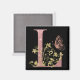 Pink Glitter Floral Letter L Magnet