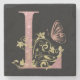 Pink Glitter Floral Letter L Stone Coaster