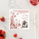Pink Glitter Flowers Floral Photo 50th Birthday Party Napkins. The design has beautiful blush pink flower blossoms in pink faux glitter. A custom photo is in an arc frame. The text is fully customisable.