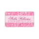 Pink return address labels with template fields for your name and address and pink glitter (printed image) borders.