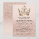 Pink Glitter Gold Crown Quinceanera 15th Birthday Invitation