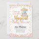 Carousel Baby Shower Invitation with pink and gold glitter confetti
