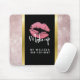 Pink Glitter Lips & Rose Gold Tropical Leaves Mouse Pad